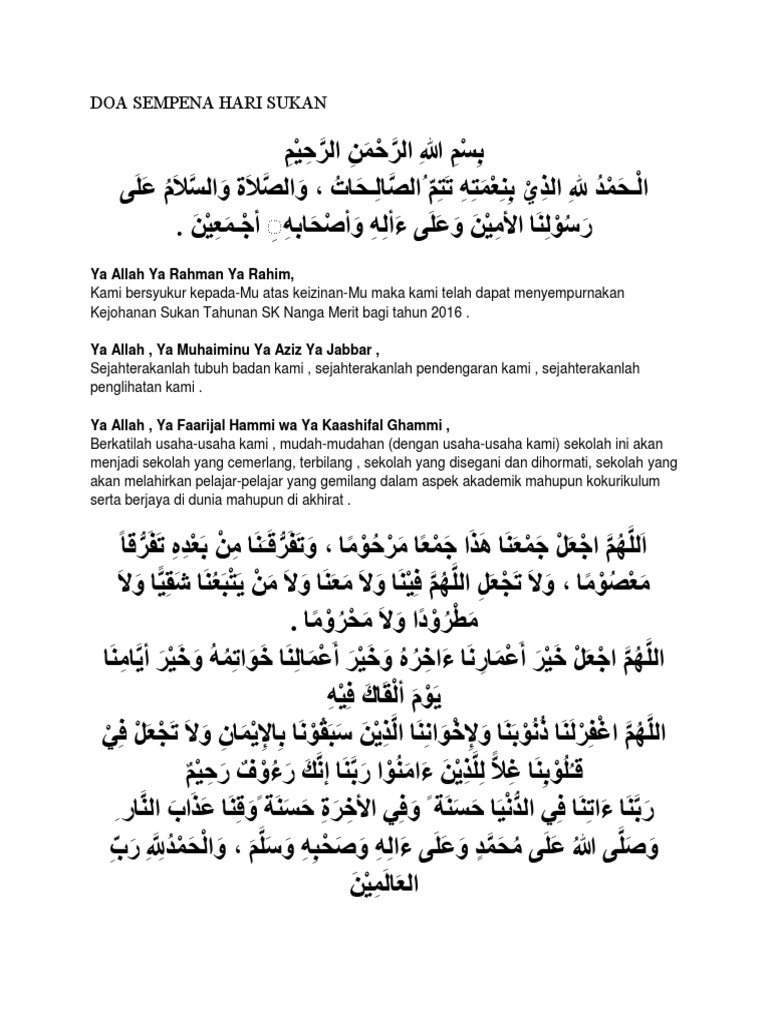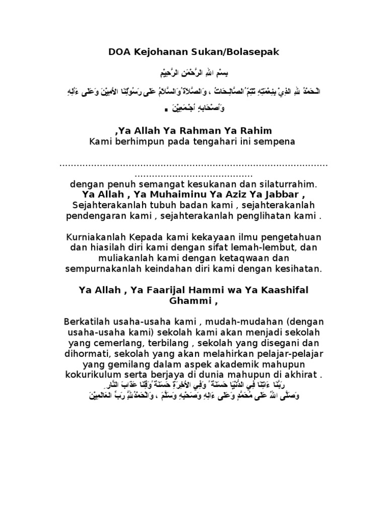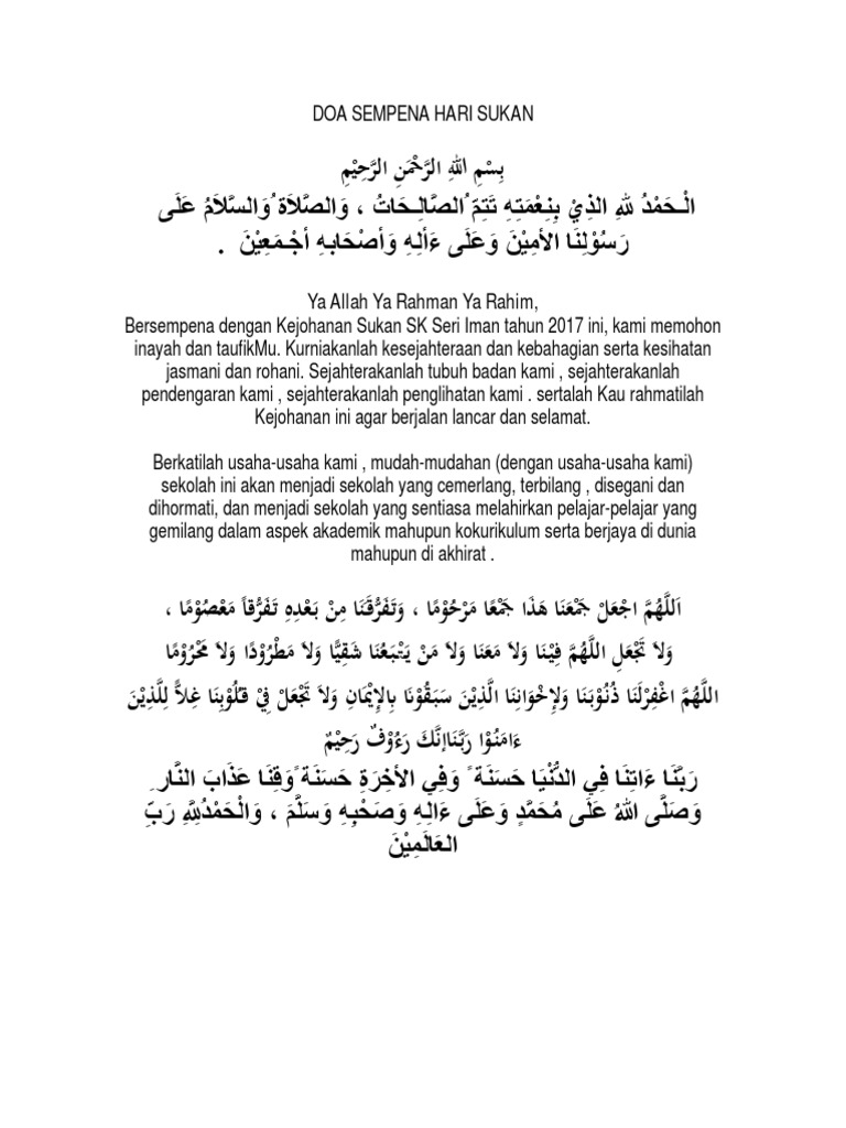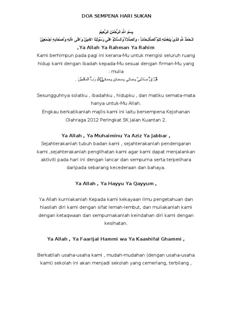 Doa Hari Sukan Sekolah