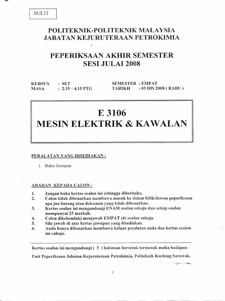 . Isi kandungan soalan peperiksaan ini adalah berdasarkan Dokumen Penjajaran Kurikulum 20 serta Rancangan Pengajaran Tahunan. Santun Mantap Salam En. Selain daripada itu pelajar juga akan diberi pendedahan dari aspek pengurusan penyeliaan dan penyelenggaraan mesin serta peralatan termasuk kawalan automasi lanjutan.